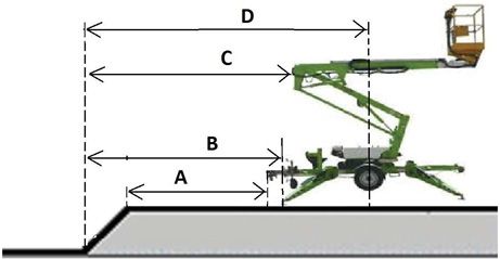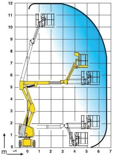 #238. W oparciu o przedstawiony wykres pola pracy wskaż; która z pozycji uniesienia platformy jest niemożliwa: