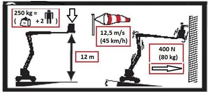 #76. W oparciu o przedstawiony rysunek określ maksymalny udźwig podestu: