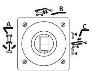 #88. Który z oznaczonych piktogramów oznacza funkcję skrętu kół jezdnych podestu: