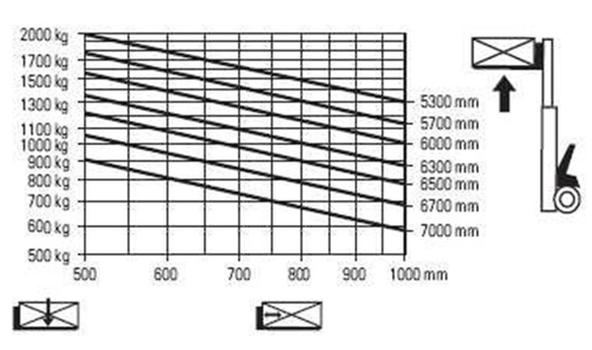 #236. W oparciu o przedstawiony diagram udźwigu określ maksymalny udźwig wózka, podnoszącego ładunek na wysokość 5000 mm: